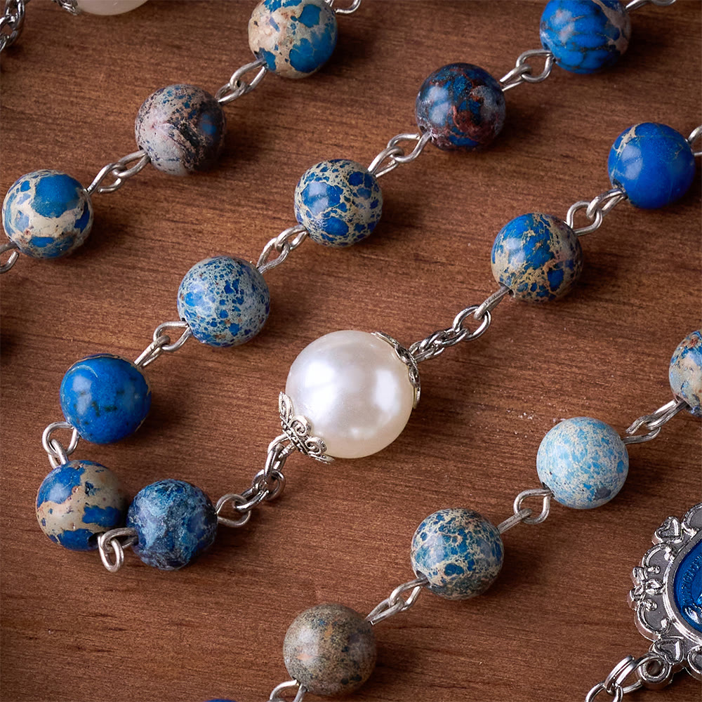 Because Deep Blue Imperial Jasper is a natural stone, no two beads—and no two rosaries—are exactly alike. The individual patterns of midnight and earth mean your piece is a one-of-a-kind treasure.