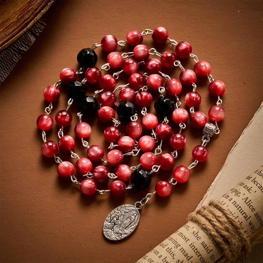 Crafted with burgundy cat-eye gradient beads and black faceted crystals, this chaplet exudes a solemn elegance. Each bead features a shifting silken luster that captures light, providing a serene focus for your daily spiritual journey.
