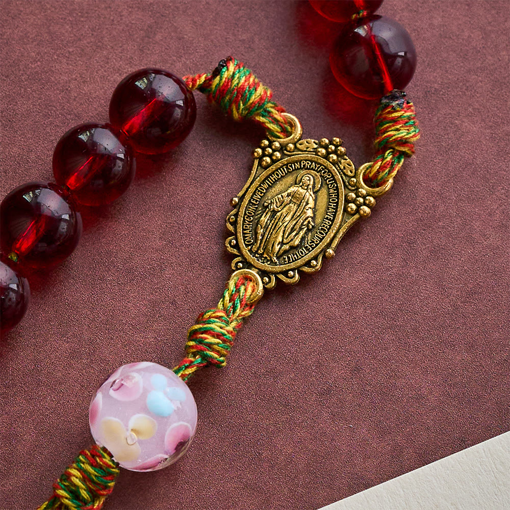 SolaceBeads Wine Red St. Therese Glass Roasary Chaplet With Floral Lampwork Bead: Timeless Elegance