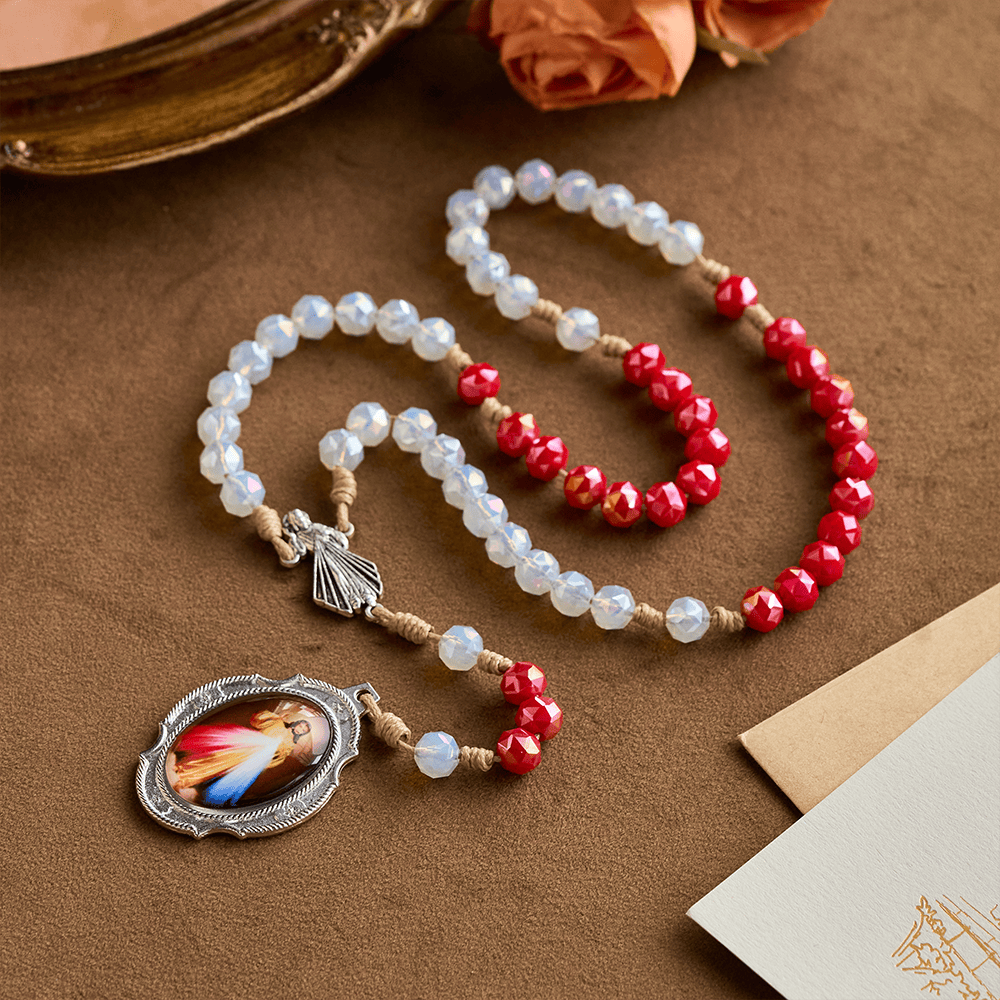 SolaceBeads Red & White Crystal Beads Divine Mercy Chaplet: A Guardian of Grace