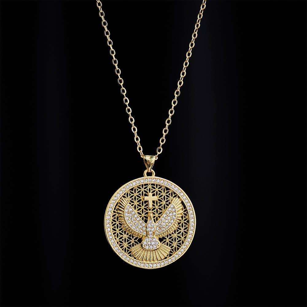 Expertly crafted using precision casting and hand-polishing techniques, every Holy Spirit pendant shines with intricate detailing. Tiny crystals catch the light, symbolizing the brilliance of faith illuminating your daily life.